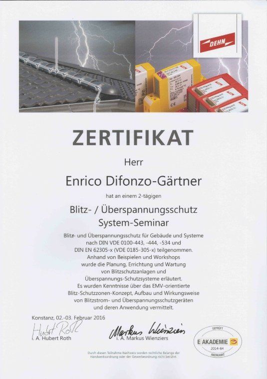 - Sachverständiger für das elektrotechnische Handwerk Teilgebiet Energie- und Gebäudetechnik
